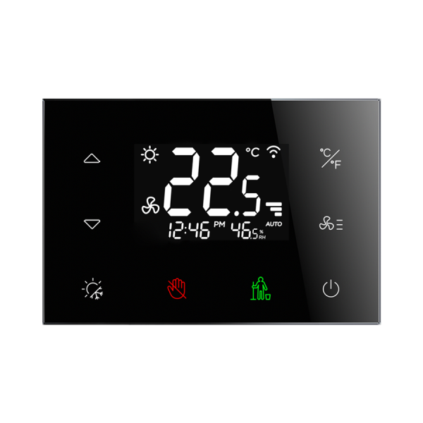 Sklenený dotykový termostat pre fancoily RFTC-3/B. čierna (voliteľné ikony)